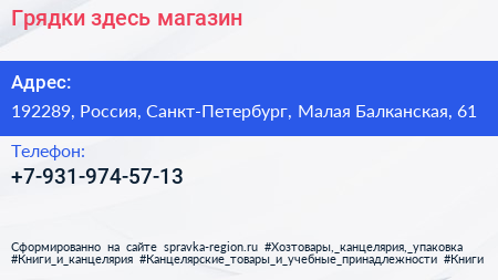 Грядки здесь, магазин по адресу 192289, Россия, Санкт-Петербург, Малая Балканская, 61 в дальнейшем Организация, размещена в следующих категориях: