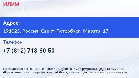 Илим по адресу 191025, Россия, Санкт-Петербург, Марата, 17 в дальнейшем Организация, размещена в следующих категориях: