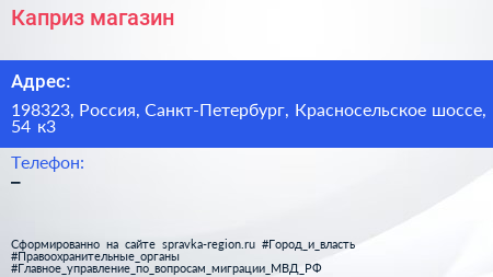 Каприз, магазин по адресу 198323, Россия, Санкт-Петербург, Красносельское шоссе, 54 к3 в дальнейшем Организация, размещена в следующих категориях: