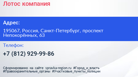 Лотос, компания по адресу 195067, Россия, Санкт-Петербург, проспект Непокорённых, 63 в дальнейшем Организация, размещена в следующих категориях: