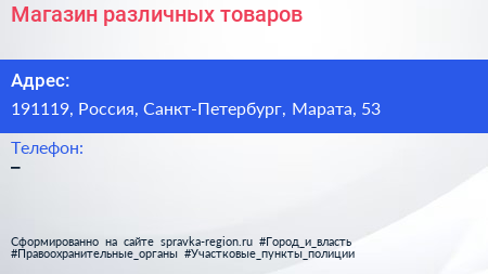 Магазин различных товаров по адресу 191119, Россия, Санкт-Петербург, Марата, 53 в дальнейшем Организация, размещена в следующих категориях: