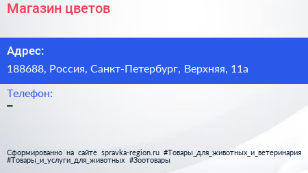 Магазин цветов по адресу 188688, Россия, Санкт-Петербург, Верхняя, 11а в дальнейшем Организация, размещена в следующих категориях: