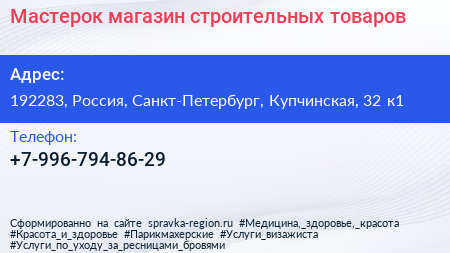 Мастерок, магазин строительных товаров по адресу 192283, Россия, Санкт-Петербург, Купчинская, 32 к1 в дальнейшем Организация, размещена в следующих категориях: