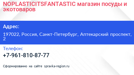 NOPLASTICITSFANTASTIC, магазин посуды и экотоваров по адресу 197022, Россия, Санкт-Петербург, Аптекарский проспект, 2 в дальнейшем Организация, размещена в следующих категориях: