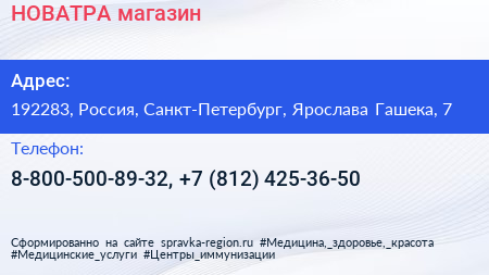 НОВАТРА, магазин по адресу 192283, Россия, Санкт-Петербург, Ярослава Гашека, 7 в дальнейшем Организация, размещена в следующих категориях: