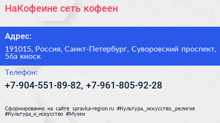 #НаКофеине, сеть кофеен по адресу 191015, Россия, Санкт-Петербург, Суворовский проспект, 56а киоск в дальнейшем Организация, размещена в следующих категориях: