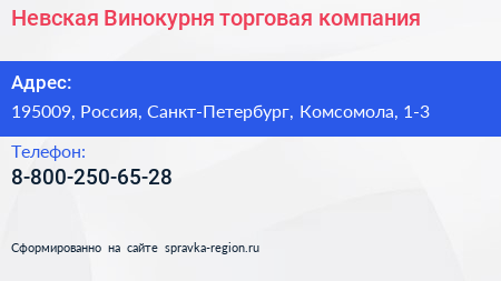 Невская Винокурня, торговая компания по адресу 195009, Россия, Санкт-Петербург, Комсомола, 1-3 в дальнейшем Организация, размещена в следующих категориях:
