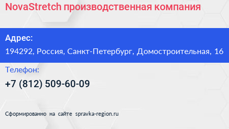 NovaStretch, производственная компания по адресу 194292, Россия, Санкт-Петербург, Домостроительная, 16 в дальнейшем Организация, размещена в следующих категориях: