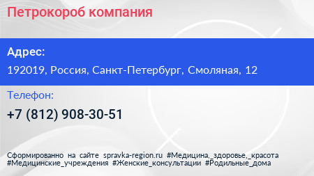 Для связи с организацией воспользуйтесь номером телефона: +7 (812) 908-30-51. Пн: c 10:00-18:00, Вт: c 10:00-18:00, Ср: c 10:00-18:00, Чт: c 10:00-18:00, Пт: c 10:00-18:00, Сб: выходной, Вс: выходной, вы можете обратиться в эту организацию.