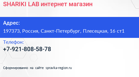 SHARIKI LAB, интернет-магазин по адресу 197373, Россия, Санкт-Петербург, Плесецкая, 16 ст1 в дальнейшем Организация, размещена в следующих категориях: