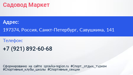 Садовод Маркет по адресу 197374, Россия, Санкт-Петербург, Савушкина, 141 в дальнейшем Организация, размещена в следующих категориях: