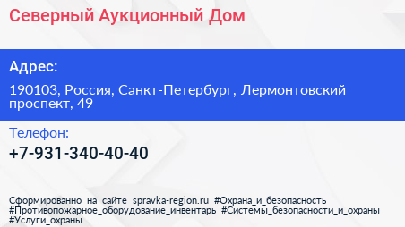Северный Аукционный Дом по адресу 190103, Россия, Санкт-Петербург, Лермонтовский проспект, 49 в дальнейшем Организация, размещена в следующих категориях: