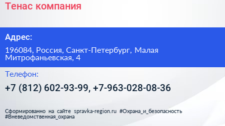 Тенас, компания по адресу 196084, Россия, Санкт-Петербург, Малая Митрофаньевская, 4 в дальнейшем Организация, размещена в следующих категориях: