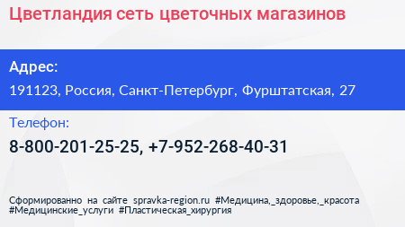 Цветландия, сеть цветочных магазинов по адресу 191123, Россия, Санкт-Петербург, Фурштатская, 27 в дальнейшем Организация, размещена в следующих категориях: