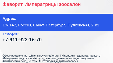 Фаворит Императрицы, зоосалон по адресу 196142, Россия, Санкт-Петербург, Пулковская, 2 к1 в дальнейшем Организация, размещена в следующих категориях: