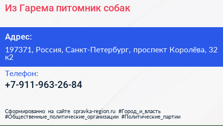 Из Гарема, питомник собак по адресу 197371, Россия, Санкт-Петербург, проспект Королёва, 32 к2 в дальнейшем Организация, размещена в следующих категориях: