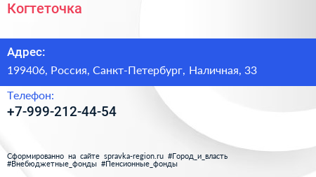 Когтеточка по адресу 199406, Россия, Санкт-Петербург, Наличная, 33 в дальнейшем Организация, размещена в следующих категориях: