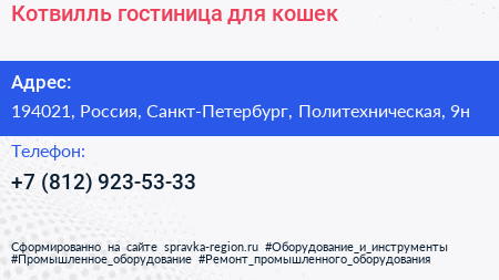Котвилль, гостиница для кошек по адресу 194021, Россия, Санкт-Петербург, Политехническая, 9н в дальнейшем Организация, размещена в следующих категориях: