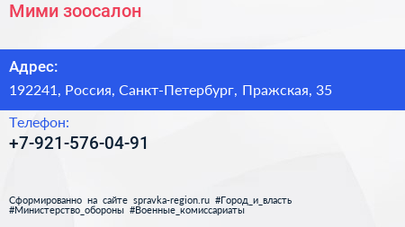 Мими, зоосалон по адресу 192241, Россия, Санкт-Петербург, Пражская, 35 в дальнейшем Организация, размещена в следующих категориях: