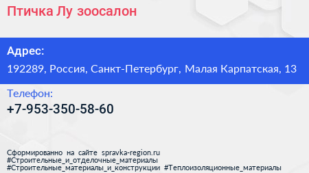 Птичка Лу, зоосалон по адресу 192289, Россия, Санкт-Петербург, Малая Карпатская, 13 в дальнейшем Организация, размещена в следующих категориях: