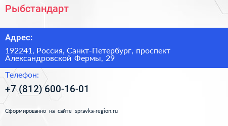 Рыбстандарт по адресу 192241, Россия, Санкт-Петербург, проспект Александровской Фермы, 29 в дальнейшем Организация, размещена в следующих категориях: