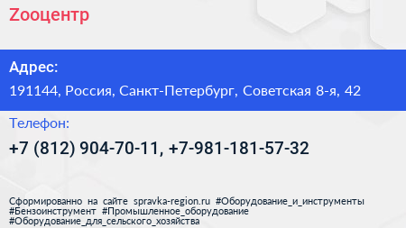 Zooцентр по адресу 191144, Россия, Санкт-Петербург, Советская 8-я, 42 в дальнейшем Организация, размещена в следующих категориях: