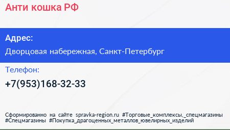 Анти-кошка.РФ по адресу Дворцовая набережная, Санкт-Петербург в дальнейшем Организация, размещена в следующих категориях: