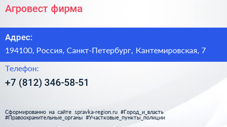 Агровест, фирма по адресу 194100, Россия, Санкт-Петербург, Кантемировская, 7 в дальнейшем Организация, размещена в следующих категориях:
