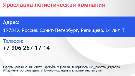 Ярославка, логистическая компания по адресу 197349, Россия, Санкт-Петербург, Репищева, 14 лит Т в дальнейшем Организация, размещена в следующих категориях: