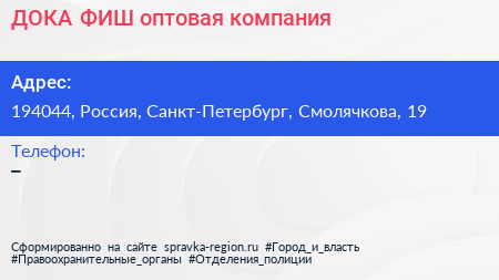 ДОКА ФИШ, оптовая компания по адресу 194044, Россия, Санкт-Петербург, Смолячкова, 19 в дальнейшем Организация, размещена в следующих категориях: