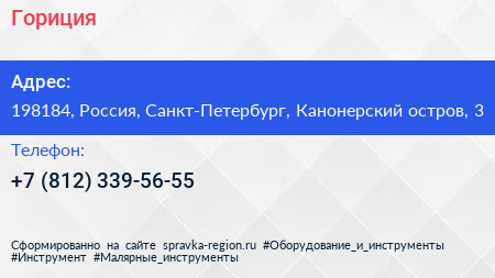 Гориция по адресу 198184, Россия, Санкт-Петербург, Канонерский остров, 3 в дальнейшем Организация, размещена в следующих категориях: