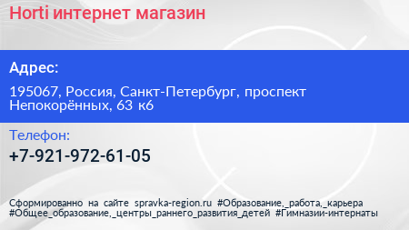 Horti, интернет-магазин по адресу 195067, Россия, Санкт-Петербург, проспект Непокорённых, 63 к6 в дальнейшем Организация, размещена в следующих категориях: