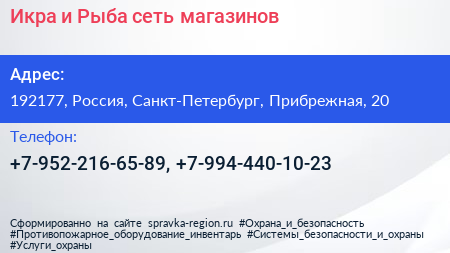 Икра и Рыба, сеть магазинов по адресу 192177, Россия, Санкт-Петербург, Прибрежная, 20 в дальнейшем Организация, размещена в следующих категориях: