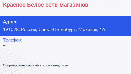 Красное & Белое, сеть магазинов по адресу 191028, Россия, Санкт-Петербург, Моховая, 16 в дальнейшем Организация, размещена в следующих категориях: