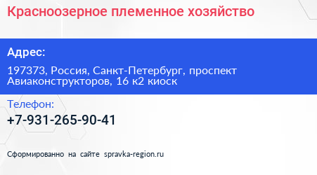 Красноозерное, племенное хозяйство по адресу 197373, Россия, Санкт-Петербург, проспект Авиаконструкторов, 16 к2 киоск в дальнейшем Организация, размещена в следующих категориях: