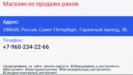Магазин по продаже раков по адресу 188660, Россия, Санкт-Петербург, Гаражный проезд, 3Б в дальнейшем Организация, размещена в следующих категориях: