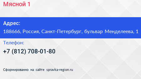 Мясной №1 по адресу 188666, Россия, Санкт-Петербург, бульвар Менделеева, 1 в дальнейшем Организация, размещена в следующих категориях: