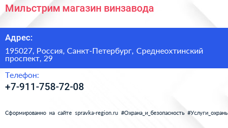 Мильстрим, магазин винзавода по адресу 195027, Россия, Санкт-Петербург, Среднеохтинский проспект, 29 в дальнейшем Организация, размещена в следующих категориях: