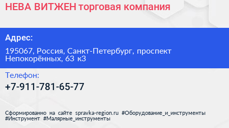 НЕВА-ВИТЖЕН, торговая компания по адресу 195067, Россия, Санкт-Петербург, проспект Непокорённых, 63 к3 в дальнейшем Организация, размещена в следующих категориях: