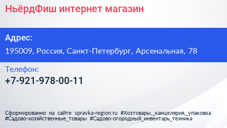 НьёрдФиш, интернет-магазин по адресу 195009, Россия, Санкт-Петербург, Арсенальная, 78 в дальнейшем Организация, размещена в следующих категориях: