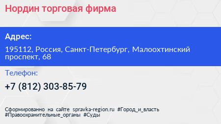 Нордин, торговая фирма по адресу 195112, Россия, Санкт-Петербург, Малоохтинский проспект, 68 в дальнейшем Организация, размещена в следующих категориях: