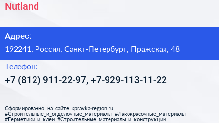 Nutland по адресу 192241, Россия, Санкт-Петербург, Пражская, 48 в дальнейшем Организация, размещена в следующих категориях: