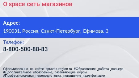 O: spaсe, сеть магазинов по адресу 190031, Россия, Санкт-Петербург, Ефимова, 3 в дальнейшем Организация, размещена в следующих категориях: