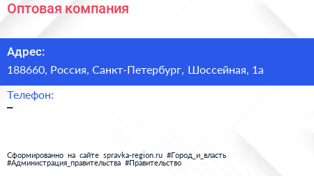 Оптовая компания по адресу 188660, Россия, Санкт-Петербург, Шоссейная, 1а в дальнейшем Организация, размещена в следующих категориях: