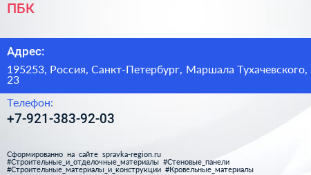 ПБК по адресу 195253, Россия, Санкт-Петербург, Маршала Тухачевского, 23 в дальнейшем Организация, размещена в следующих категориях:
