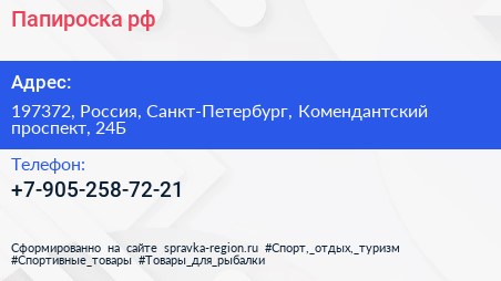 Папироска.рф по адресу 197372, Россия, Санкт-Петербург, Комендантский проспект, 24Б в дальнейшем Организация, размещена в следующих категориях: