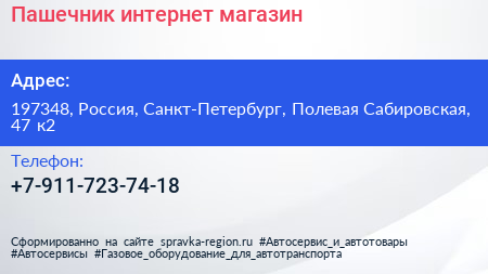 Пашечник, интернет-магазин по адресу 197348, Россия, Санкт-Петербург, Полевая Сабировская, 47 к2 в дальнейшем Организация, размещена в следующих категориях: