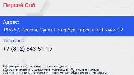 Персей Спб по адресу 195257, Россия, Санкт-Петербург, проспект Науки, 12 в дальнейшем Организация, размещена в следующих категориях: