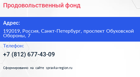 Продовольственный фонд по адресу 192019, Россия, Санкт-Петербург, проспект Обуховской Обороны, 7 в дальнейшем Организация, размещена в следующих категориях: