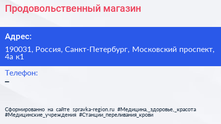 Продовольственный магазин по адресу 190031, Россия, Санкт-Петербург, Московский проспект, 4а к1 в дальнейшем Организация, размещена в следующих категориях: